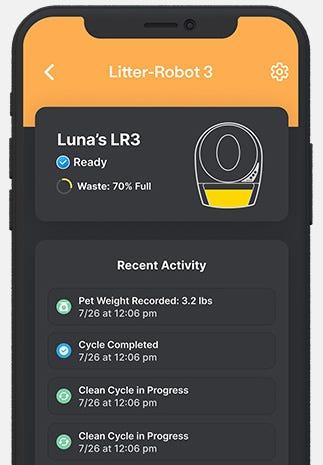 Naudodami programėlę, galėsite stebėti ir valdyti automatinį katės tualetą „Litter-Robot 4“ tiesiai iš savo telefono, peržiūrėti savaitės ir mėnesio naudojimo statistiką, kuri padės pastebėti elgsenos ar sveikatos būklės pokyčius. Be to, galėsite gauti pranešimus, kai atliekų stalčius bus pilnas. „Litter-Robot 4“ automatinis katės tualetas leidžia realiuoju laiku stebėti kraiko lygį ir fiksuoja katės svorį po kiekvieno pasinaudojimo tualetu.